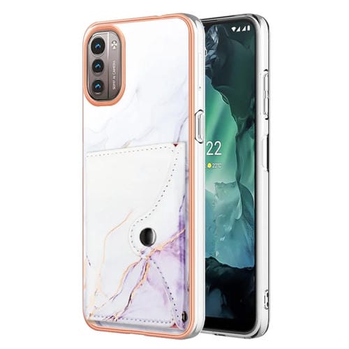 Estuche para Nokia G21 y G11 con Ranura para Tarjeta y Patrón Mármol (Blanco y Morado)