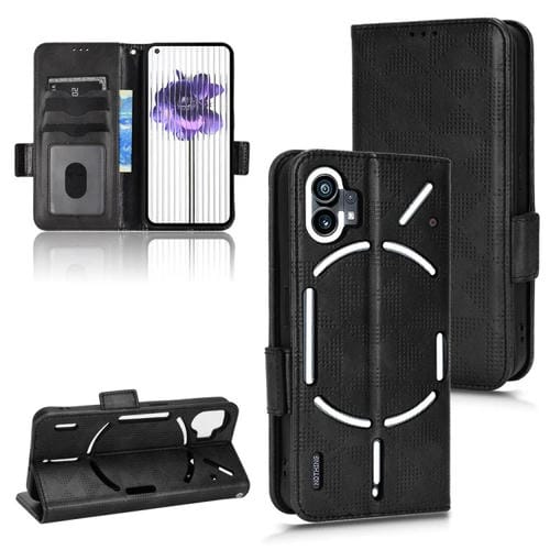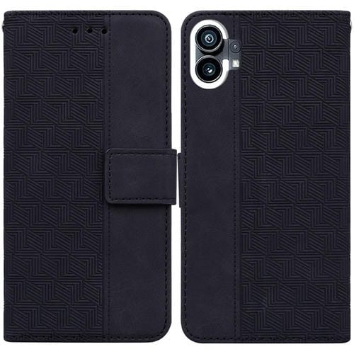 Estuche para Nothing Phone 1 de Cuero con Tapa en Relieve Geométrico (Negro)