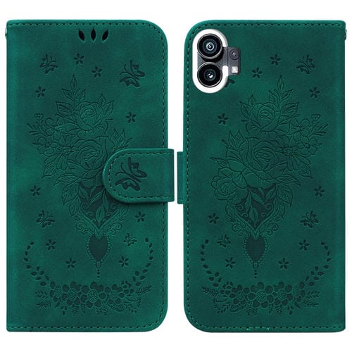 Estuche para Nothing Phone 1 de Cuero en Relieve con Mariposa y Rosa (Verde)