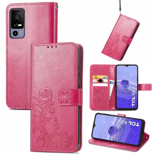 Estuche para TCL 40R de Cuero con Hebilla en Relieve y Cierre de Cuatro Hojas (Rosa)