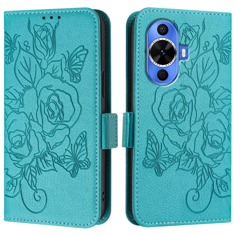 Estuche de Cuero Antirrobo RFID para Huawei Nova 12S 4G con Relieve Rosa (Azul Claro)