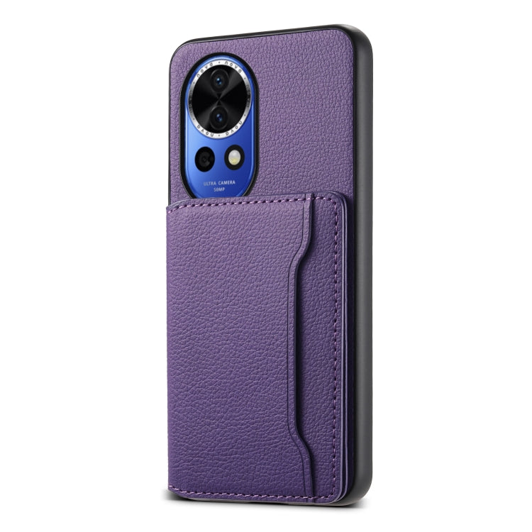 Funda para Huawei Nova 12 con Bolsa para Tarjetas y Textura de Pantorrilla (Púrpura)