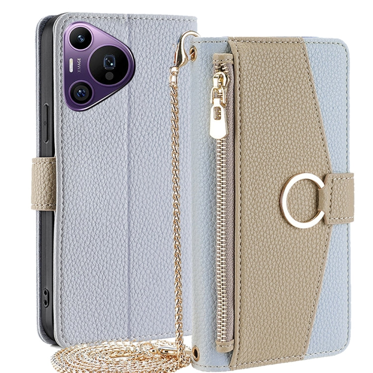 Funda de Cuero Crossbody para Huawei Pura 70 5G con Textura Litchi (Azul)