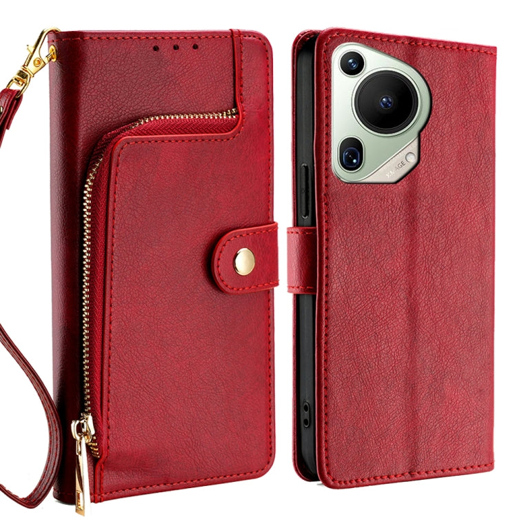 Funda de Cuero para Huawei Pura 70 Ultra 5G con Bolsa y Cremallera (Rojo)