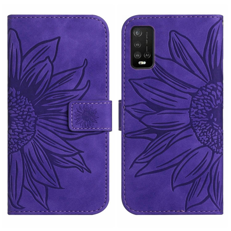 Funda Flip de Cuero T-Mobile Revvl V+ 5G con Cordón y Diseño Sun Flower (Púrpura)