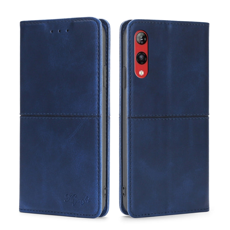 Funda de Cuero Magnética Kyocera Digno Sx3-Kyg02 con Rfid y Cepillo Antirrobo (Azul)