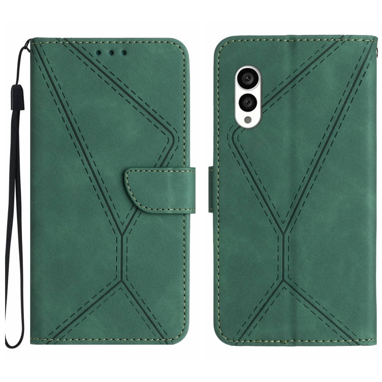Estuche para Sharp Aquos Wish SHG06 de Cuero con Costuras en Relieve (Verde)