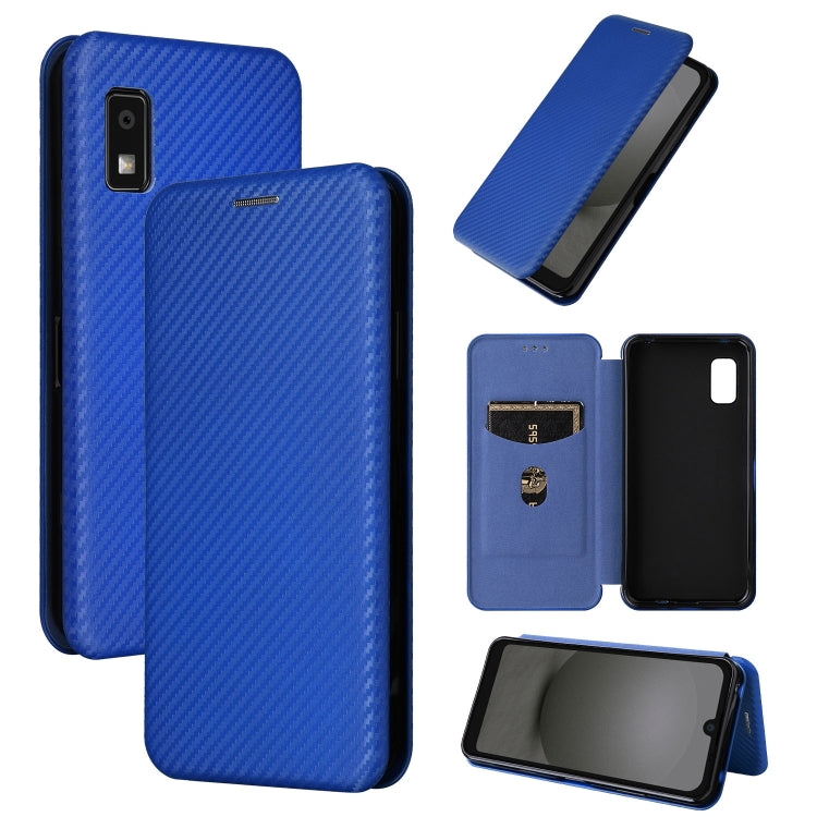 Funda de Cuero para Sharp Aquos Wish 3 con Tapa de Fibra de Carbono (Azul)