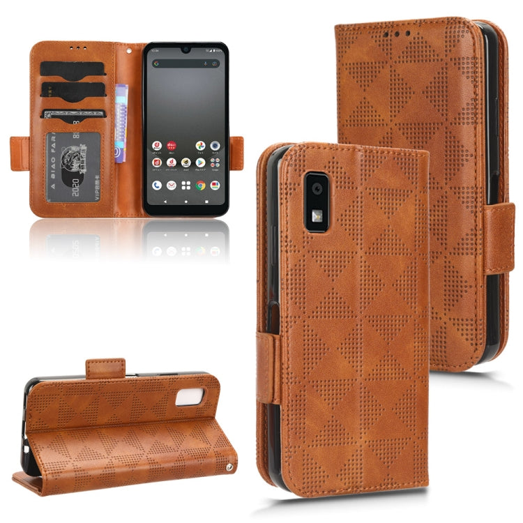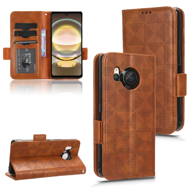 Funda de Cuero para Sharp Aquos Wish 3 con Patrón Triángulo Simétrico (Marrón)
