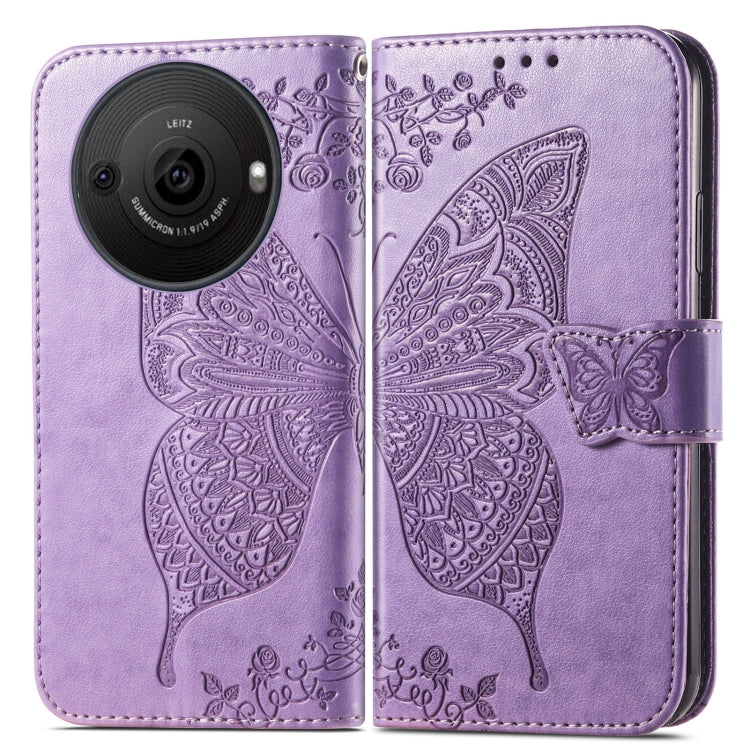 Estuche para Sharp Aquos R8 Butterfly Love Flower en Cuero En Relieve (Lavanda)