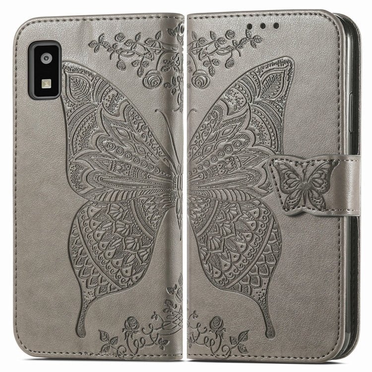 Funda de Cuero para Sharp Aquos Wish 3 Butterfly Love Flower en Relieve (Gris)