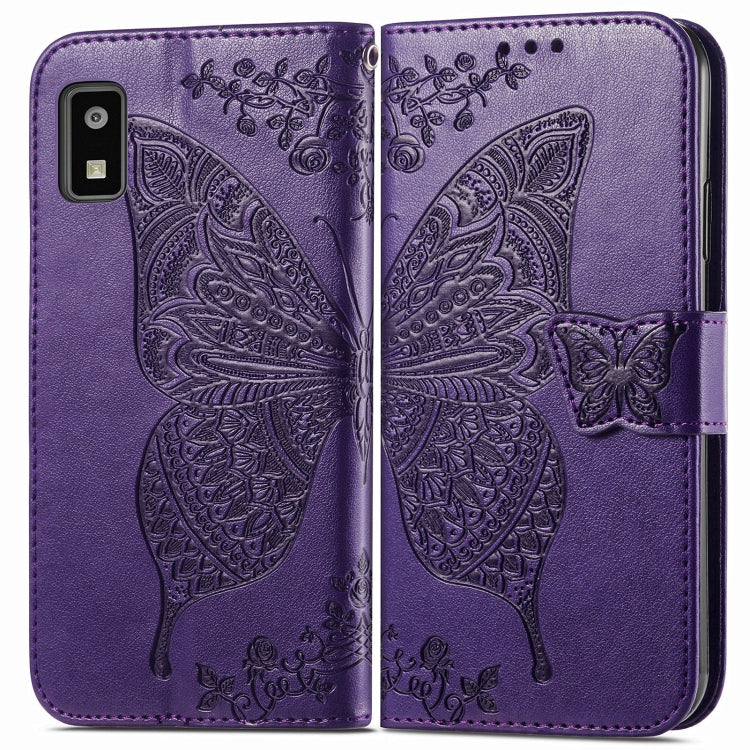 Funda de Cuero para Sharp Aquos Wish 3 Butterfly Love Flower en Relieve (Púrpura)