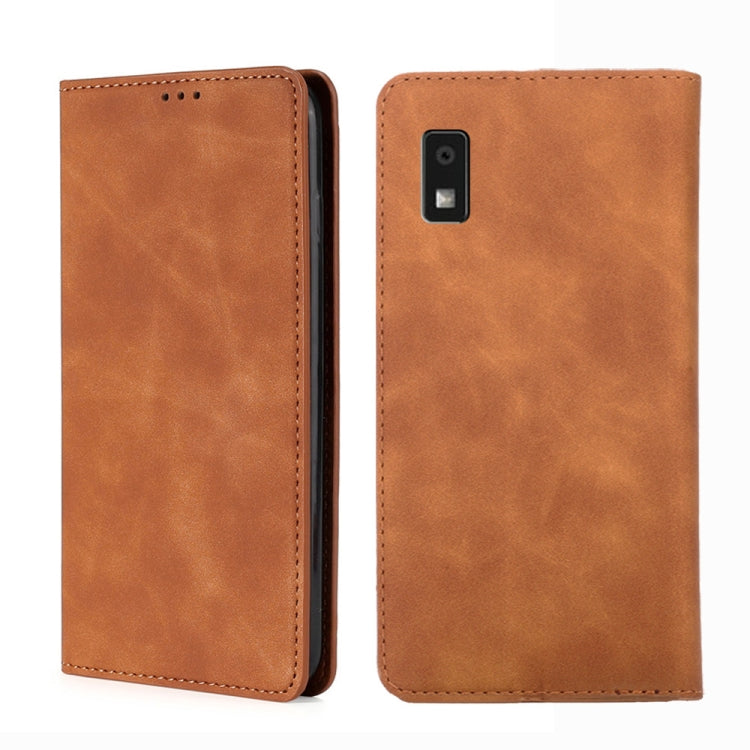 Funda de Cuero para Sharp Aquos Wish 3 Skin Feel con Hebilla Magnética (Marrón)