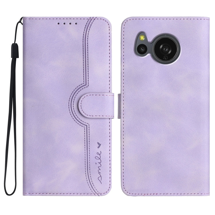 Funda de Cuero para Sharp Aquos Sense7 Sh-53C Shg10 con Patrón de Corazón (Púrpura)
