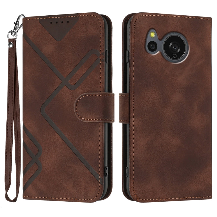 Funda de Cuero para Sharp Aquos Sense 6 / Sense6S con Patrón de Línea y Piel (Café)