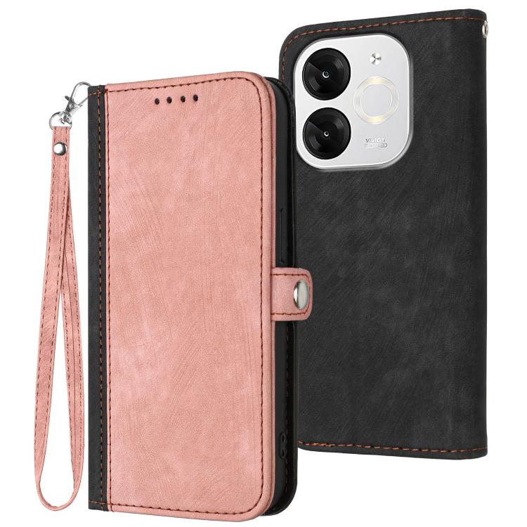 Funda de Cuero para Itel A80 con Correa de Mano y Hebilla Lateral Doble Plegable (Rosa)