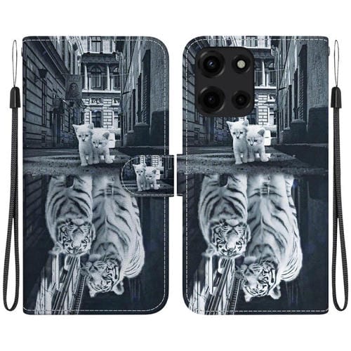 Funda de Cuero con Tapa para Motorola Moto G05/E15 con Dibujo a Color (Tigre)