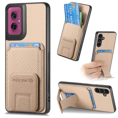 Funda Plegable Motorola Moto G55 con Soporte para Tarjetas Fibra de Carbono (Caqui)
