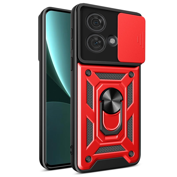 Estuche para Motorola Moto G84 Cubierta de Cámara Deslizante Híbrido TPU PC (Rojo)