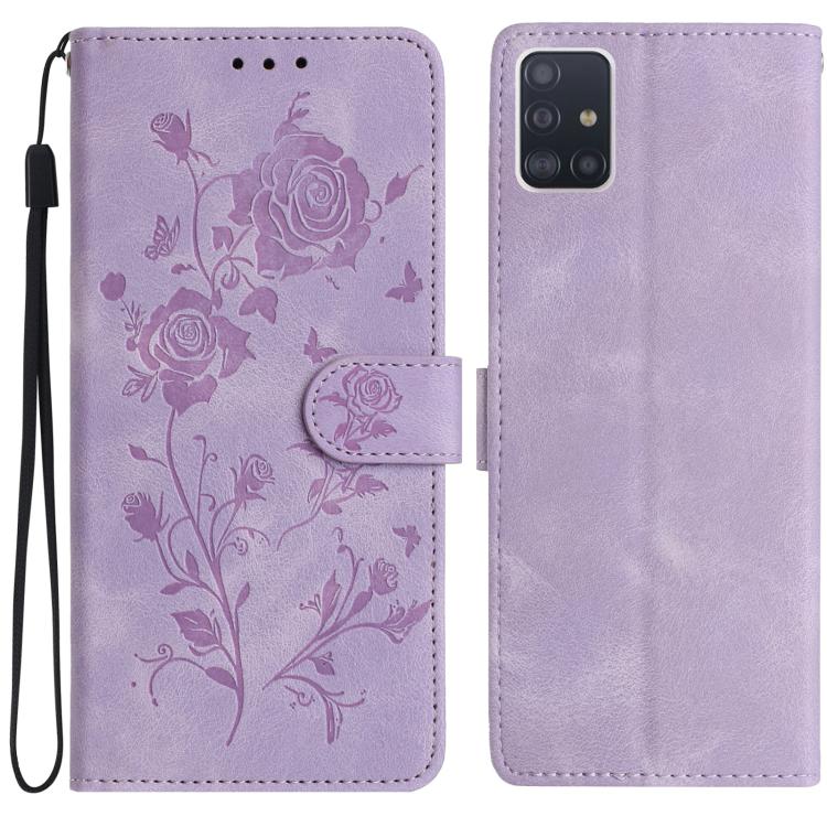 Funda de piel con estampado floral en relieve para Samsung Galaxy A51 (morado claro)