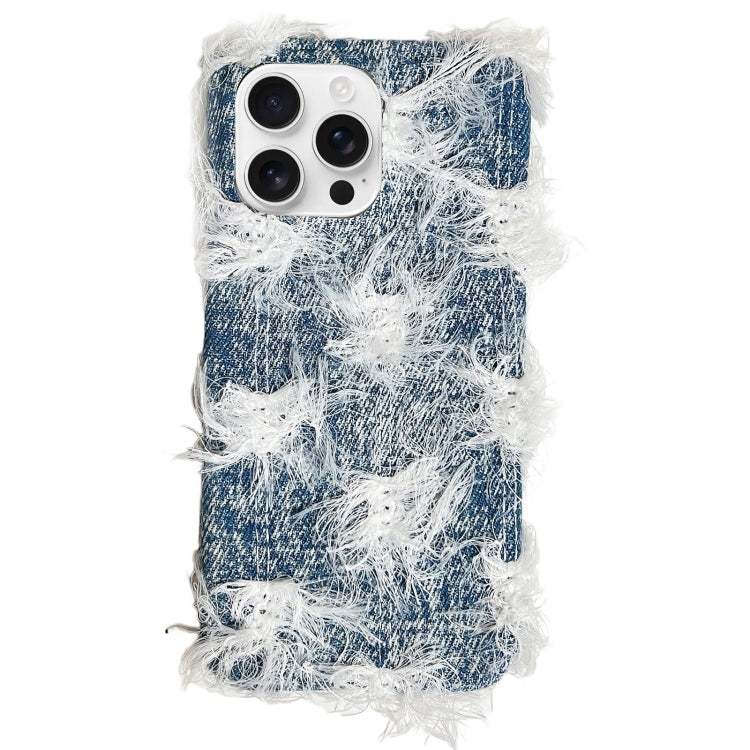 Funda TPU con Diseño de Mezclilla y Camellia para iPhone 16 Pro Max (Azul)