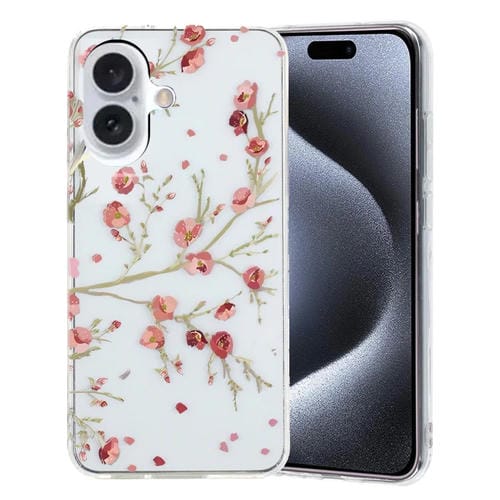 Funda para Teléfono TPU iPhone 16 Patrón de Pintura Colorida (Flores Rojas)