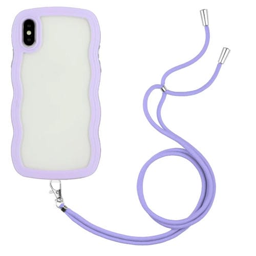 Funda para iPhone X Xs Candy Color Wave TPU Clear PC con Lanyard (Púrpura)
