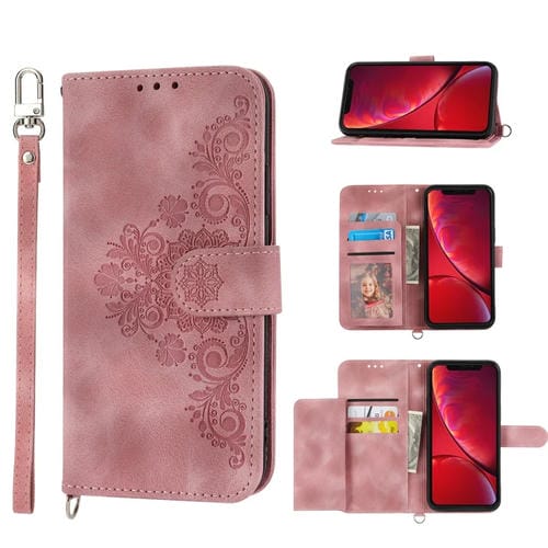 Funda de Cuero para iPhone Xs / X Skin-Feel Flowers con Billetera en Relieve (Rosa)
