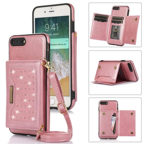 Estuche de teléfono iPhone 7 Plus 8 Plus cuero RFID tres pliegues con cordón (Oro Rosa)