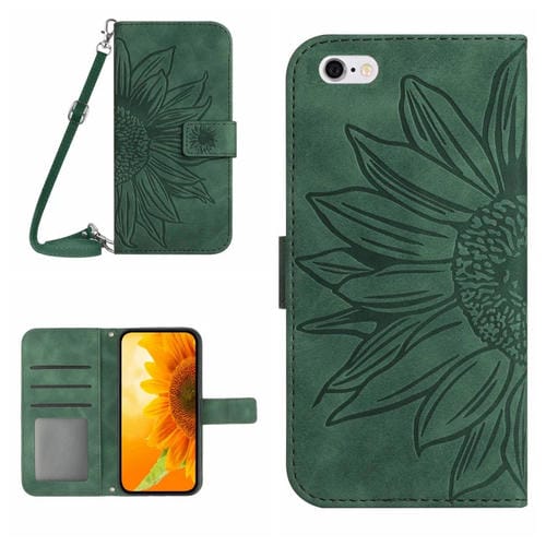 Funda Flip de Cuero para iPhone 6 Skin Feel Sun Flower Pattern con Cordón (Verde)