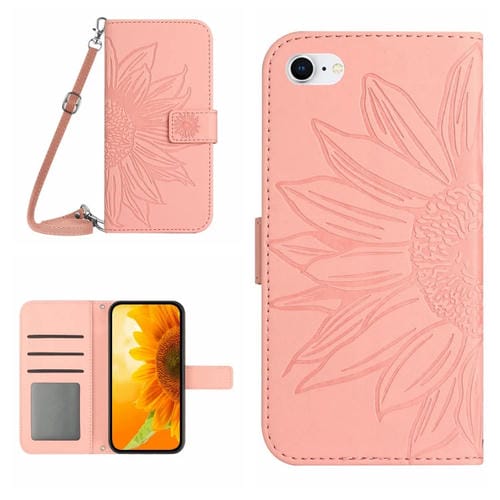 Funda de Cuero Flip para iPhone 7/8 Skin Feel Sun Flower Pattern con Cordón (Rosa)