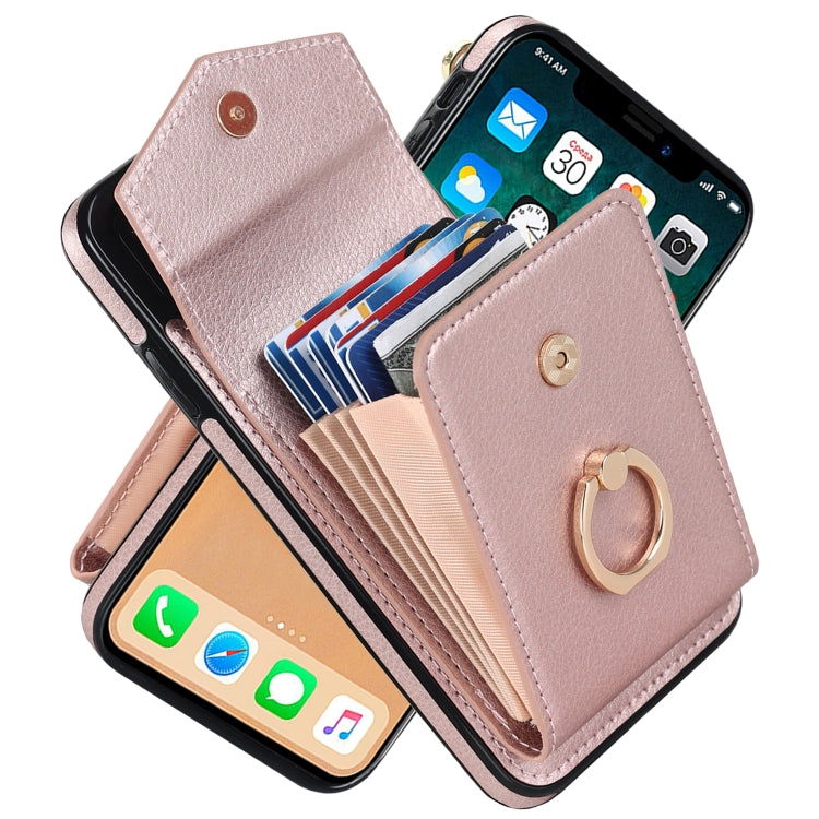 Funda para iPhone Xs Max Ring Holder con Ranura para Tarjeta RFID (Oro Rosa)