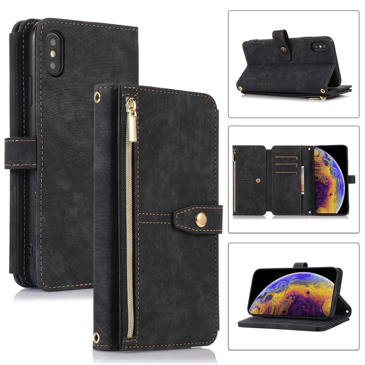 Funda de Cuero para Teléfono iPhone Xs Max Dream 9-Card Wallet Zipper Bag (Negro)