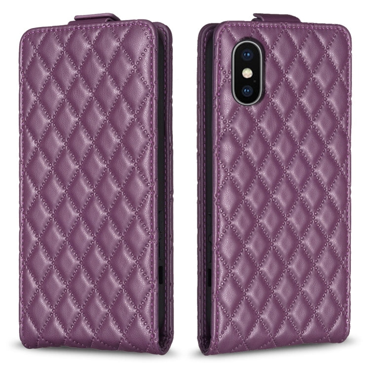 Funda de Cuero para iPhone X Xs Diamond Lattice con Tapa Vertical (Púrpura)