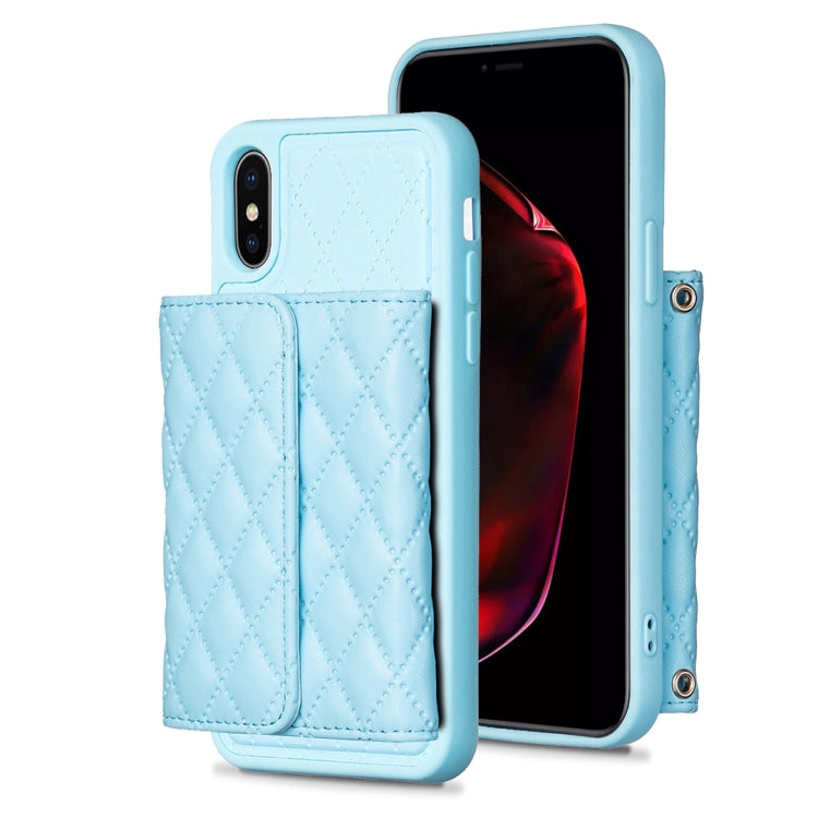 Funda de Teléfono iPhone Xs Max Cuero Rómbico con Billetera Horizontal (Azul)