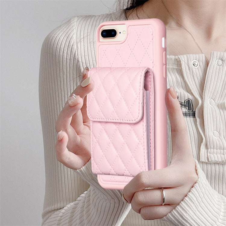Funda para iPhone 7 Plus y 8 Plus Vertical Wallet Rhombic Leather Phone Case (Rosa)