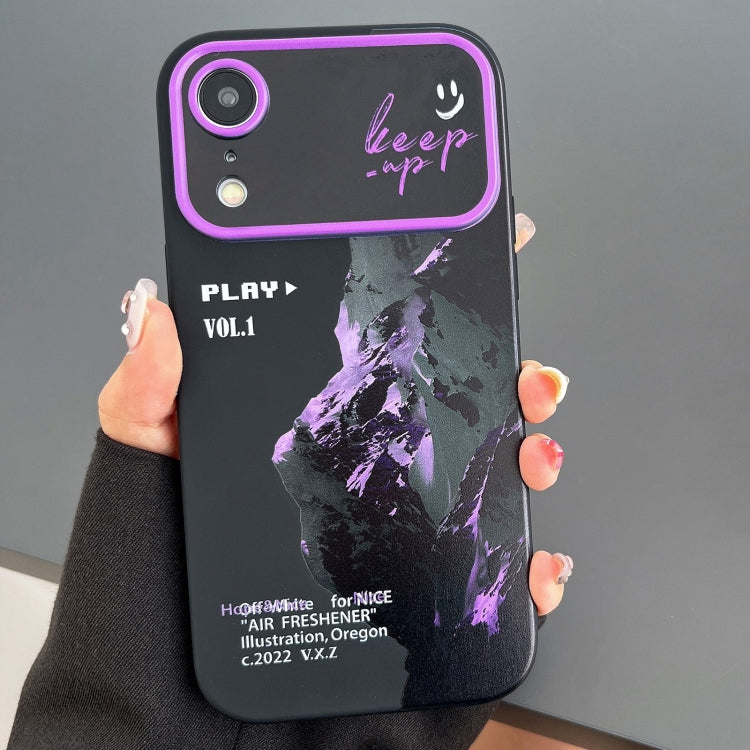 Funda para Teléfono TPU iPhone Xr con Ventana Grande y Patrón Montaña Nevada (Púrpura)