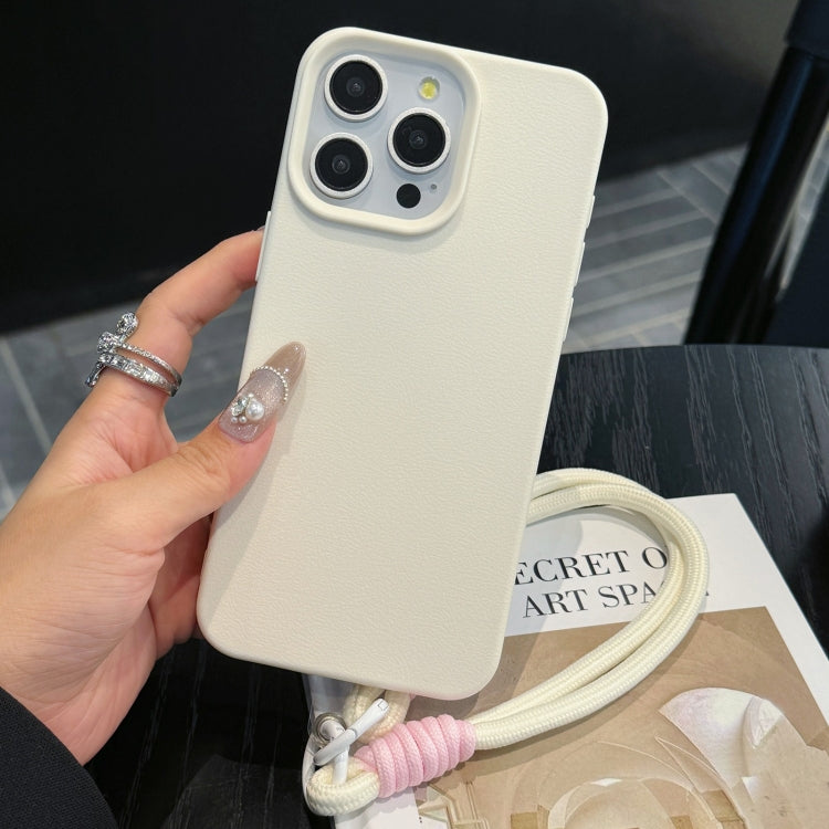 Funda de teléfono TPU Apple iPhone 12 Pro Max con textura de cuero y cordón (Blanco)