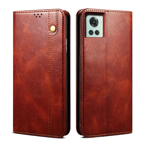 Funda para OnePlus 10R Ace Oil Wax Crazy Horse Texture Telephone Case (Marrón)