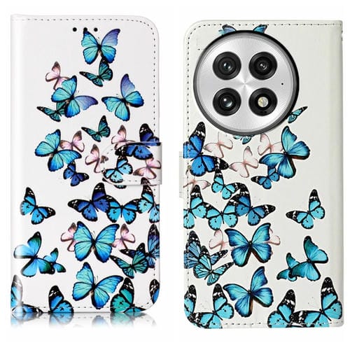 Funda de Cuero para OnePlus 13 con Patrón Mármol y Mariposas Azules (Pequeñas)