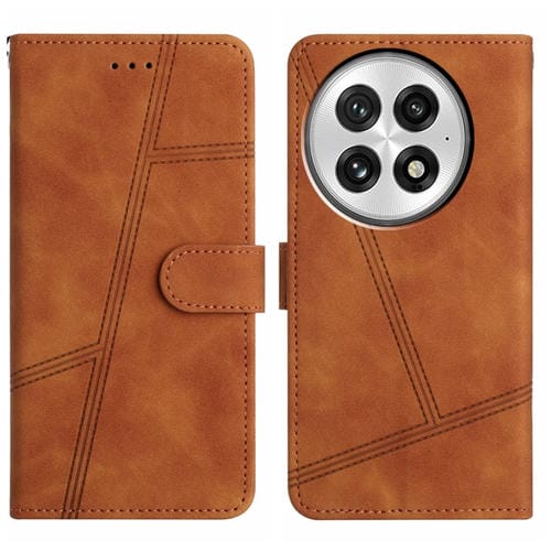 Funda de Cuero para OnePlus 13 con Costuras y Tacto Agradable (Marrón)