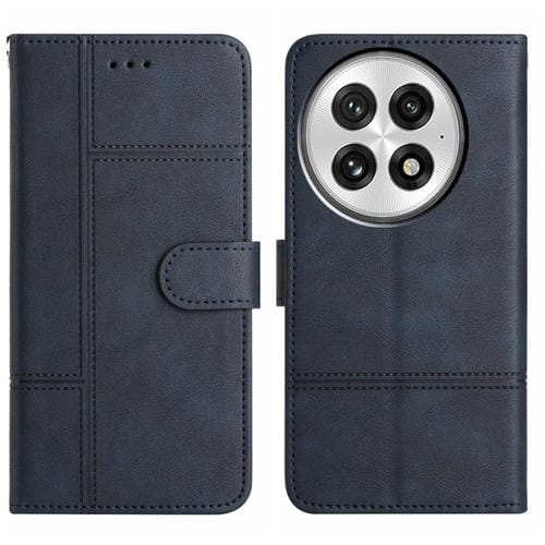 Funda de Cuero con Textura Piel de Vaca y Costuras para OnePlus 13 (Azul Oscuro)