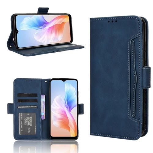 Funda de Cuero para Doogee X98 con Textura Becerro y Ranuras para Tarjetas (Azul)