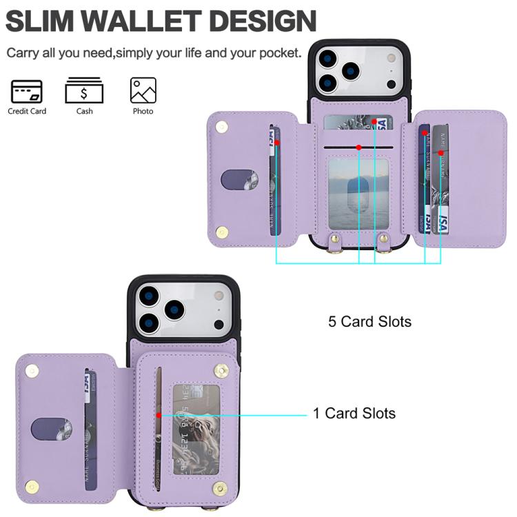 Funda de cuero RFID con múltiples tarjetas para iPhone 17 Pro (morado claro)