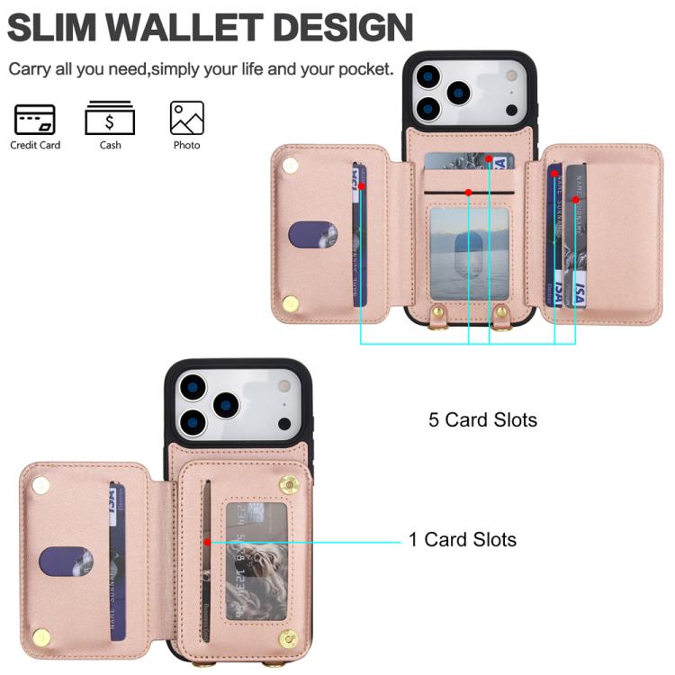 Funda con tarjetero y anillo para iPhone 17 Pro, con tacto de piel (oro rosa)