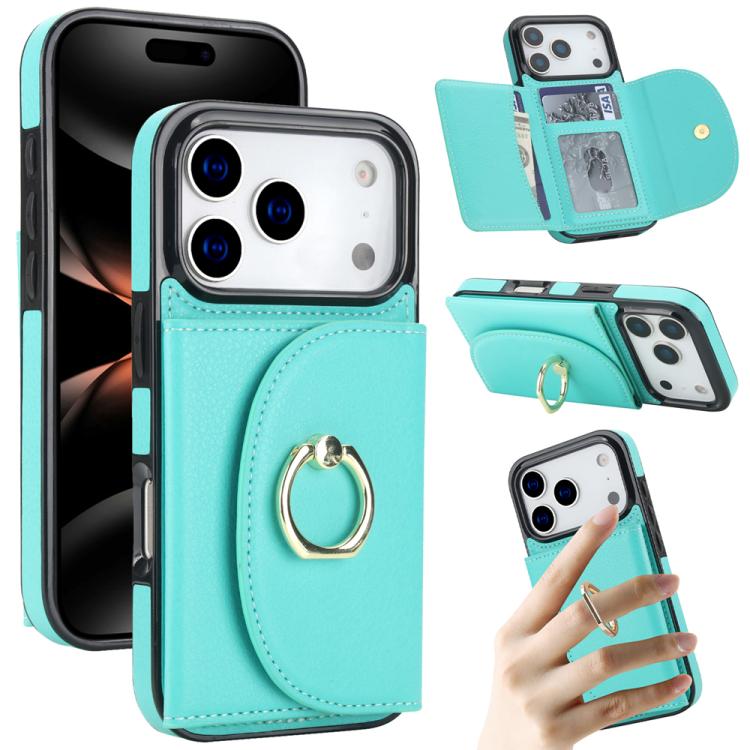 Funda con tarjetero y anillo para iPhone 17 Pro, con tacto de piel (verde)