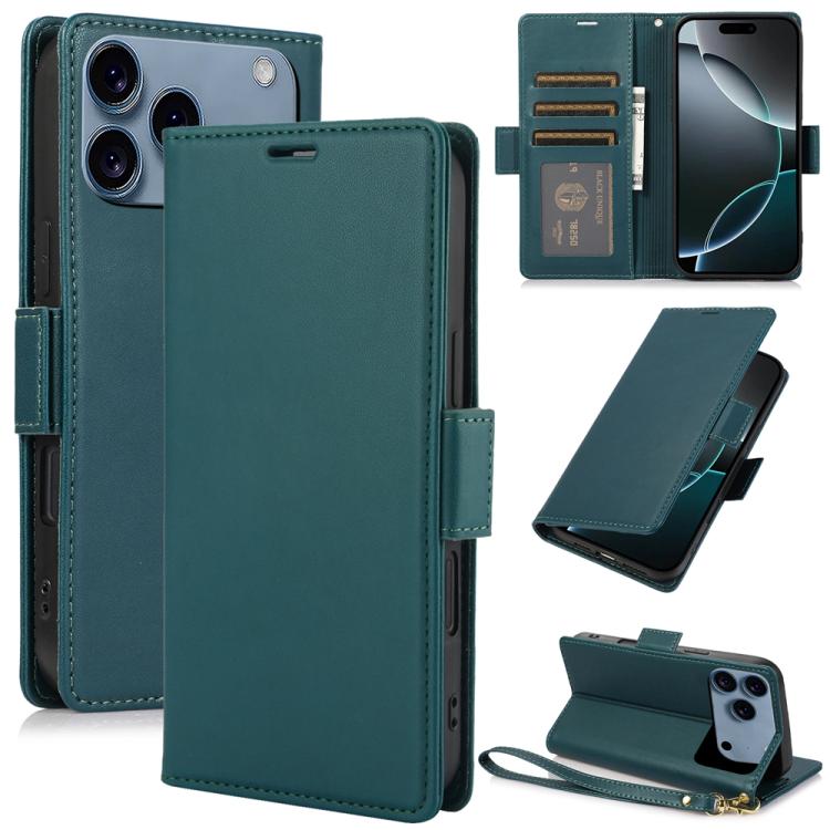 Funda de cuero antirrobo RFID con hebilla lateral para iPhone 17 Pro (verde)