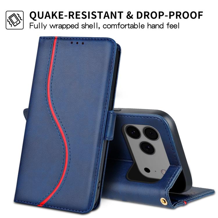 Funda de cuero con hebilla lateral y curva S para iPhone 17 Pro Max (azul)