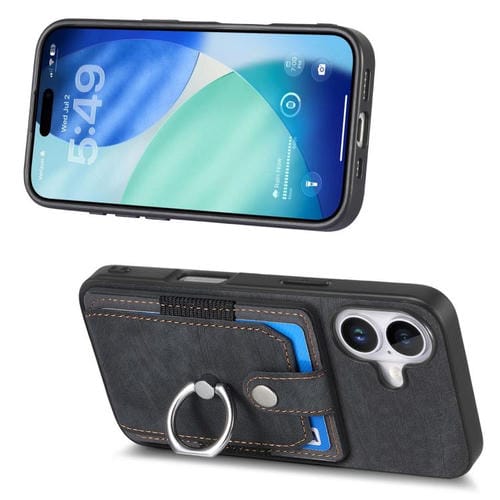 Funda tipo cartera con anillo y tarjetero para iPhone 17 (color negro)