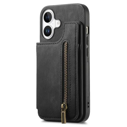 Funda de cuero estilo billetera con cremallera para iPhone 17 (negro)